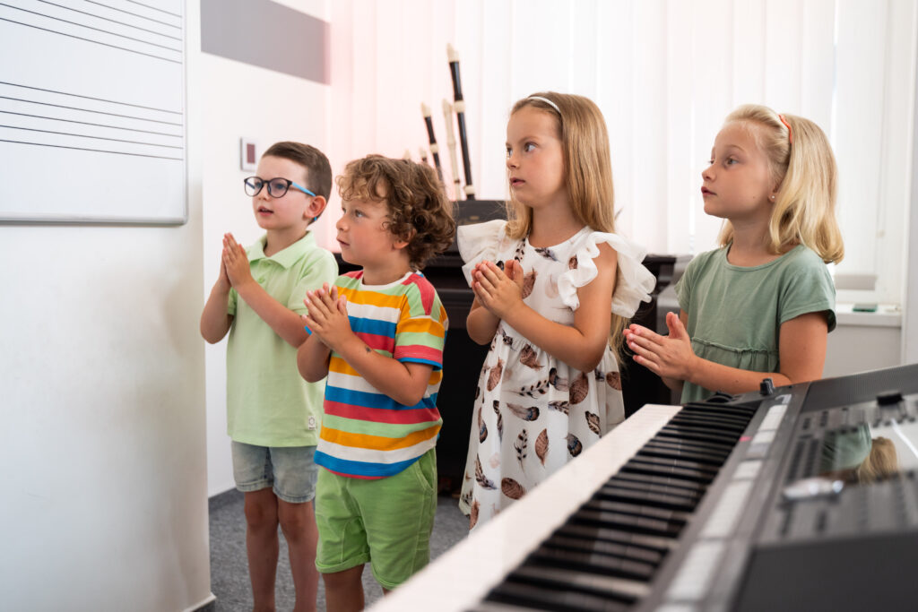 Mateřskou řeč se dítě učí mluvením – posloucháním a napodobováním. Jako matka nebo otec to zažíváte dnes a denně. Sledujete, jak se slovní zásoba Vašeho dítěte rozšiřuje a upevňuje. Stejným způsobem učíme v programu Music Parade děti i hudbu. Jen s tím rozdílem, že namísto mluvení děti poslouchají a zpívají melodie, které následně hrají na klávesové nástroje.